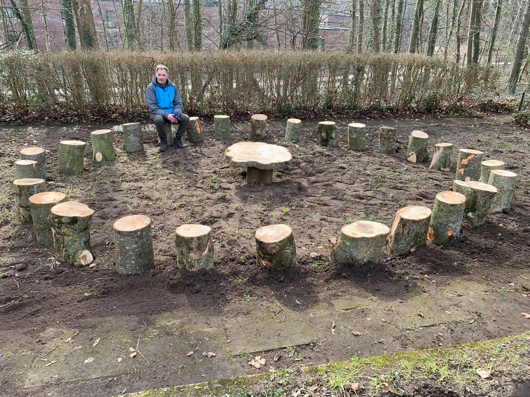 Mit vereinten Kräften wurden Beete und Laufwege von Laub und Unkraut befreit, Beete umgegraben und neu bepflanzt. Die fleißigen Helfer säten bunte Blumenwiesen, und errichteten ein neues Outdoor Klassenzimmer.