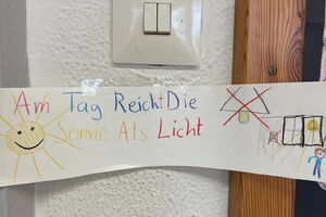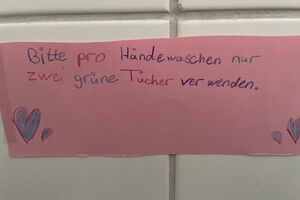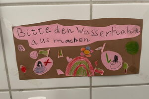 Im Sachumterricht haben sich die Kinder über Möglichkeiten zum aktiven Handeln für die Umwelt beschäftigt und lassen mit ihren Hinweisschildern alle teilhaben.